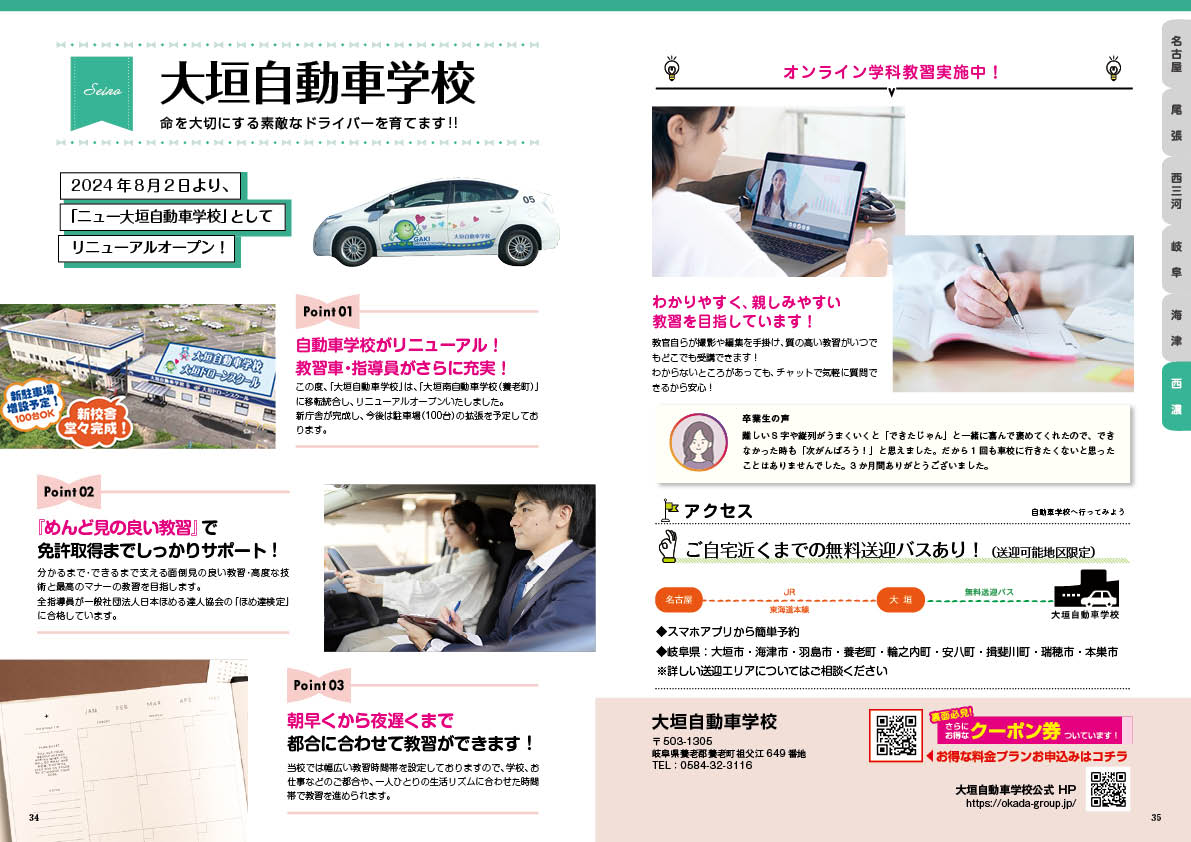 2024年8月2日より、「ニュー大垣自動車学校」としてリニューアルオープン!